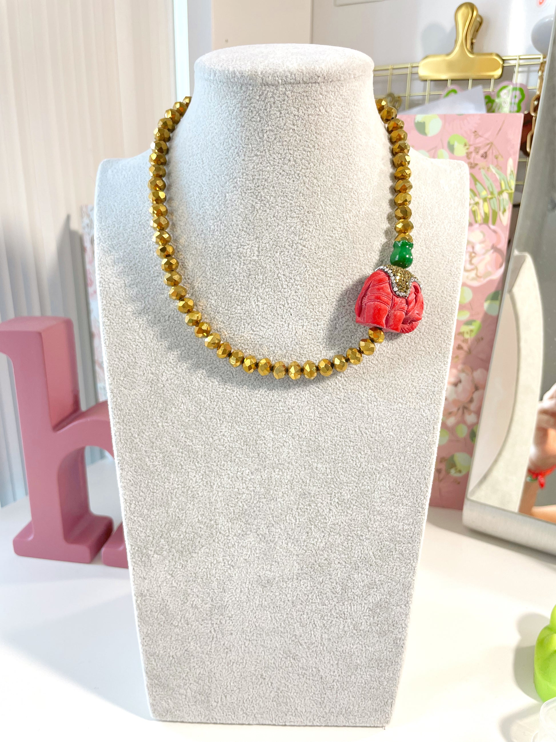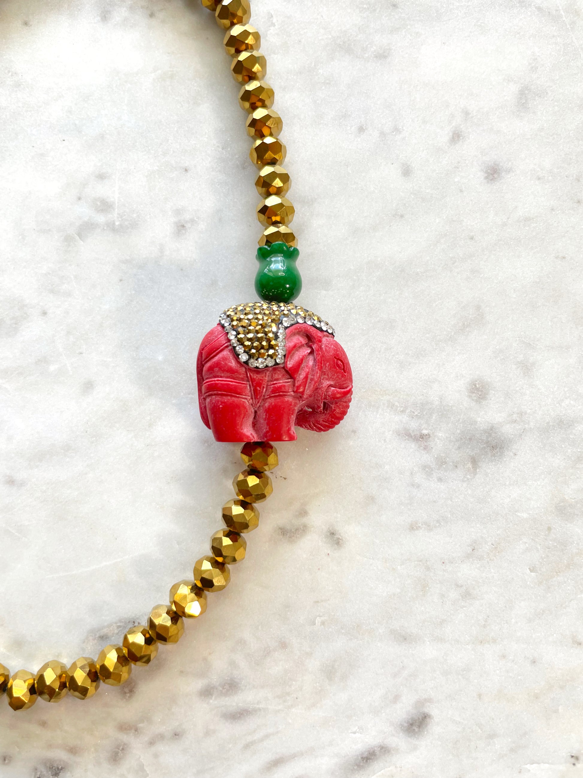 Collar de cristales con elefante y jade