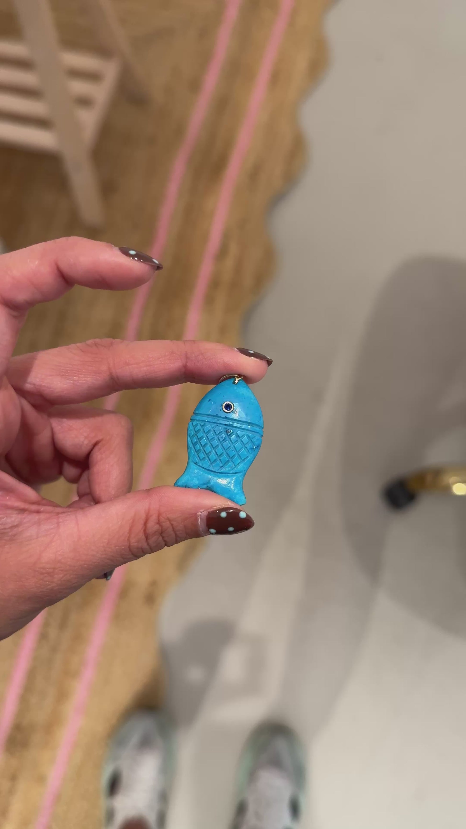 Se trata de un dije tallado a mano en piedra turquesa